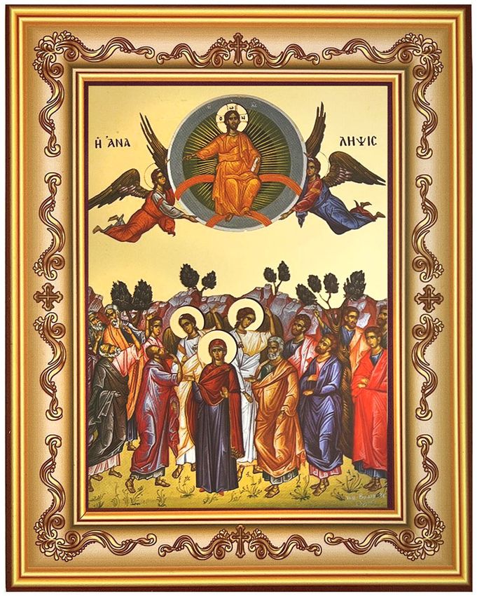 icon set in a beautiful wooden frame decorated with