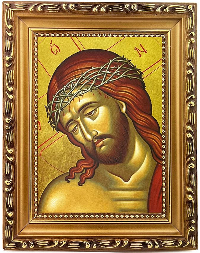 Christ the Bridegroom, wooden frame Greek Byzantine Icon with Its stand and hook for hanging on wall.