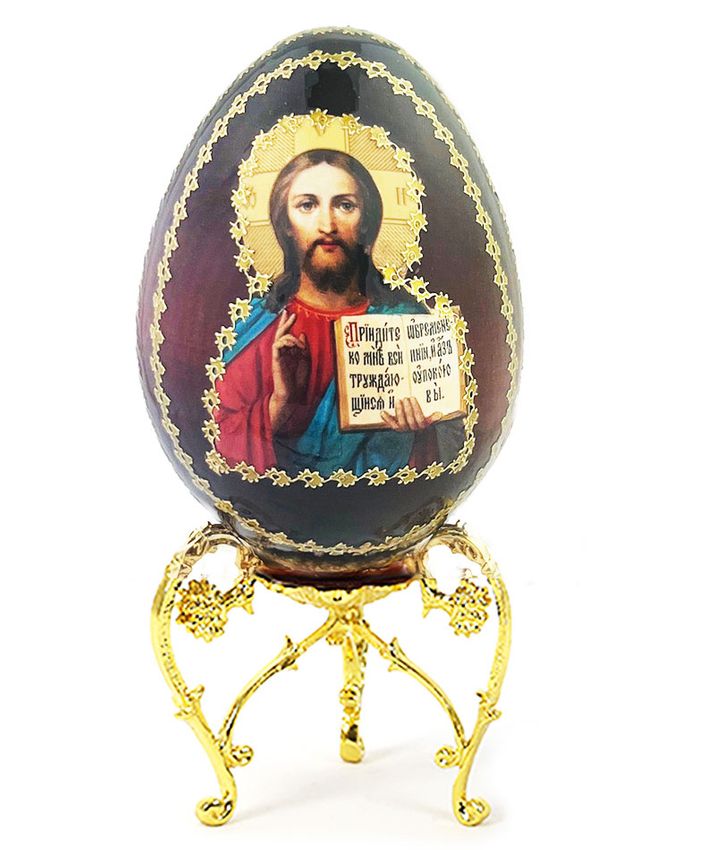 Christ The Teacher, Wooden Decoupage Icon Egg with Stand