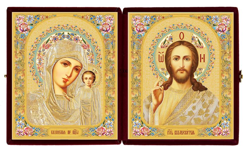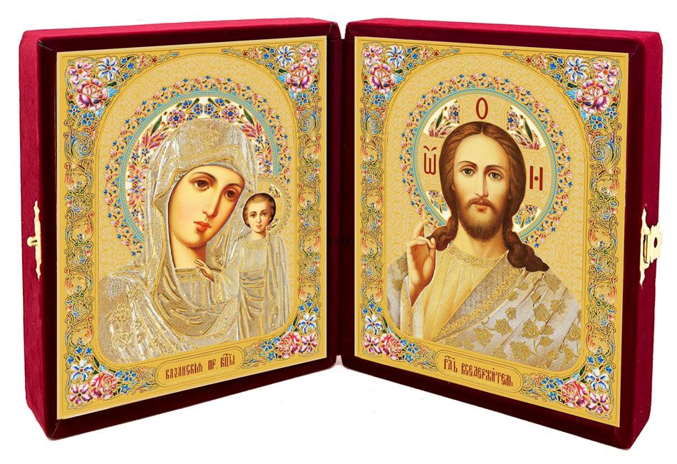 icons of Christ Almighty and the Virgin of Kazan set in an attractive velvet case that can be easily folded for