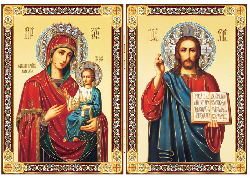 Christ The Teacher and Virgin Mary of Iveron (Iverskaya), beautiful attractive decoupage gold foil