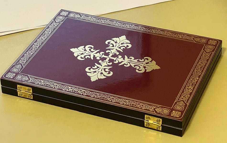 Measures: 8" tall x 6" wide, when diptych open width: 12", thickness of the diptych when it is closed 3/4"