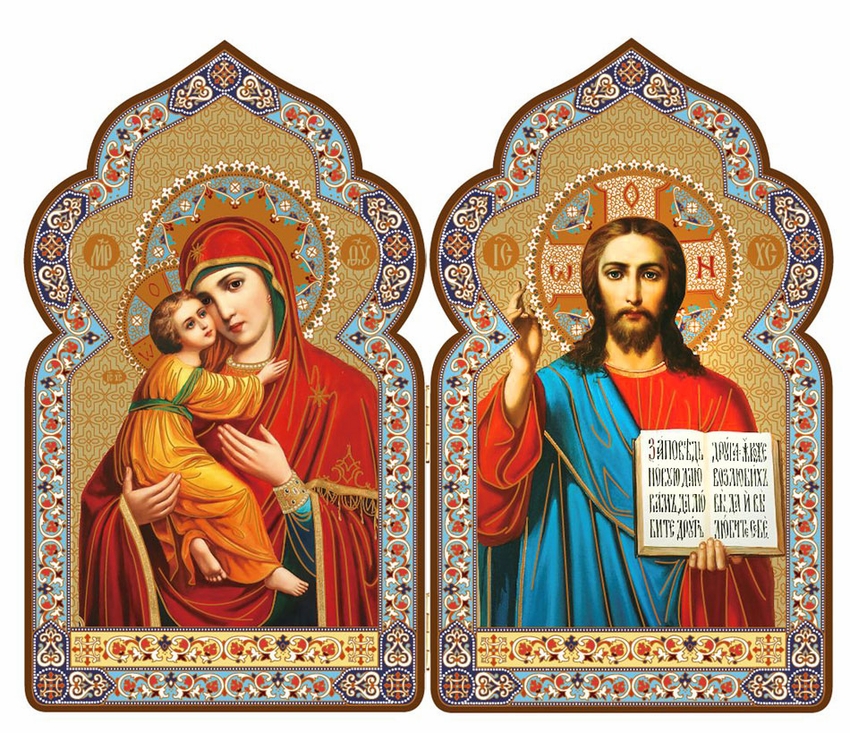 Virgin of Vladimir and Christ The Teacher, Church Dome Shape Diptych.