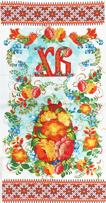 Easter Pascha Fabric Basket Cover with Flowers, Pysanky Eggs. Sign "XB" - "Christ is Risen!"