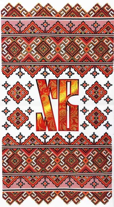 Easter Pascha Fabric Basket Cover with Ukrainian Ornaments. Sign "XB" - "Christ is Risen!"