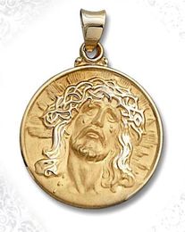 14 Kt. Yellow Gold "Ecce Homo" Hollow Round Medal with Christ Head.
