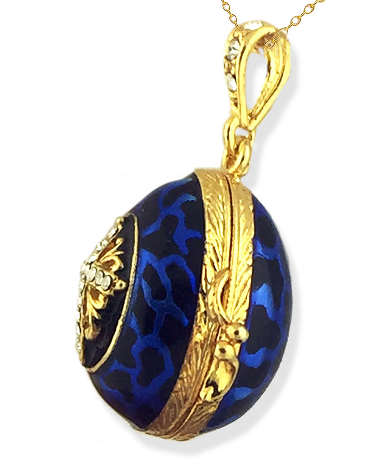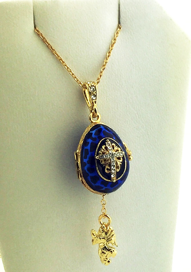 Egg Pendant Locket with Angel, Gold Gilded, Dark Blue