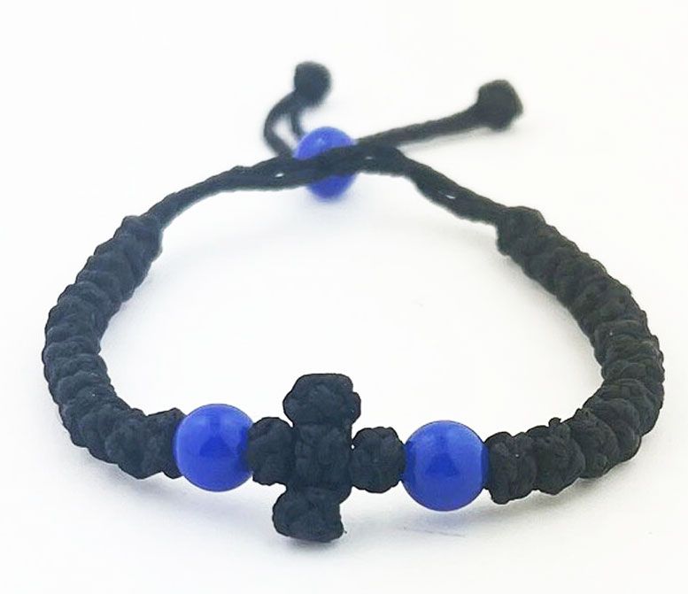 33 Knot Adjustable Bracelet w/Cross, Black