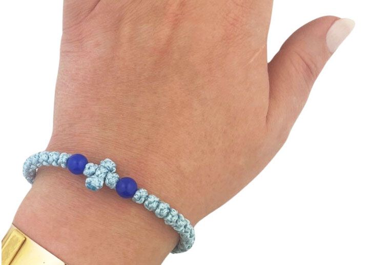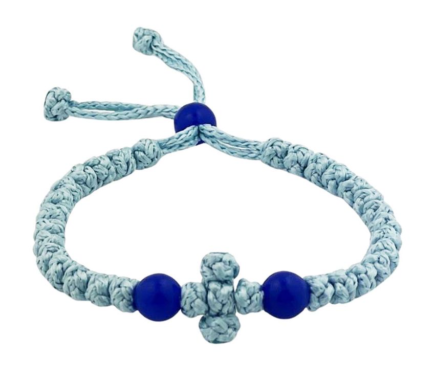 33 Knot Prayer Bracelet with Cross, Adjustable, Light Blue
