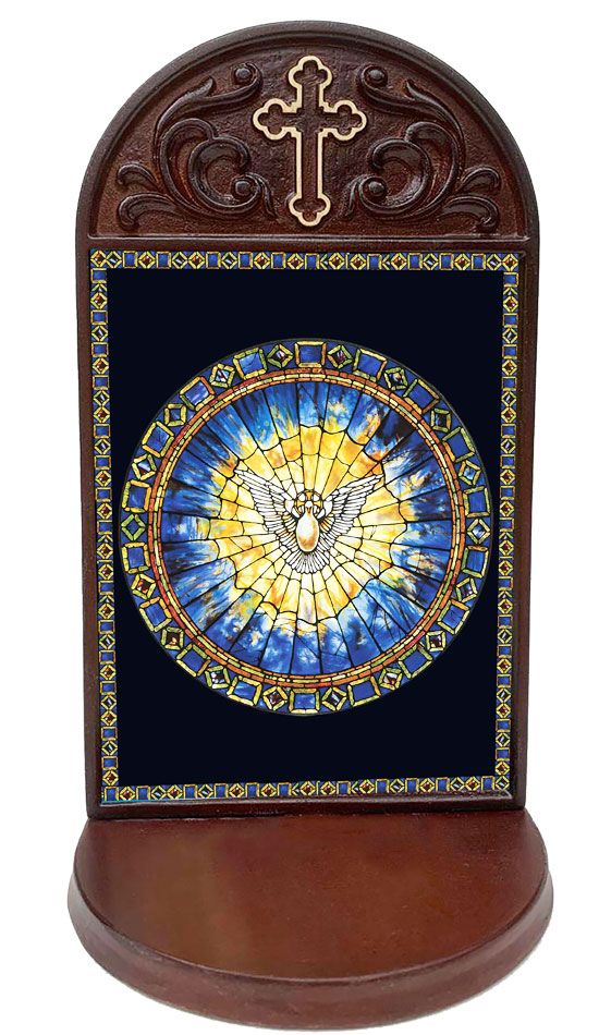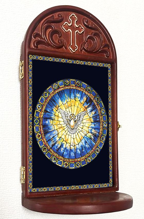 icon in wooden prayer shrine with 3" deep shelf to place rosary, candle etc.