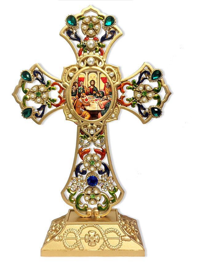 The Last Supper Icon in Filigree Standing Jeweled Cross