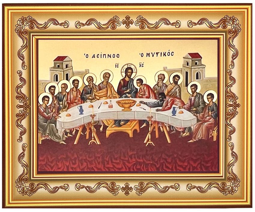 Mystical (Last) Supper, Byzantine Orthodox Icon in Frame