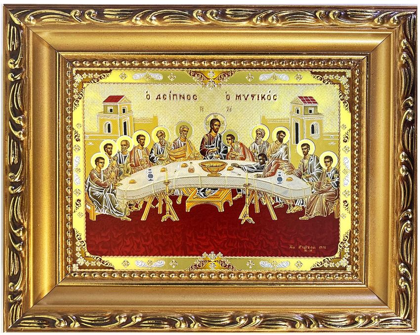 Mystical (Last) Supper, Byzantine Orthodox Icon in Frame