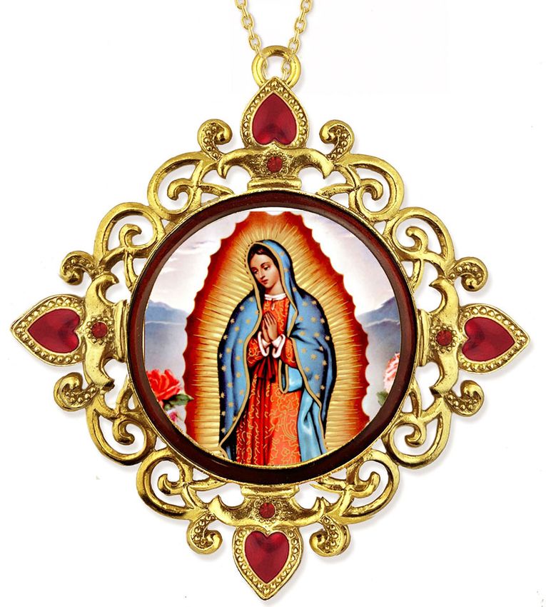 Our Lady of Guadalupe, Jeweled Round Framed Icon with Chain