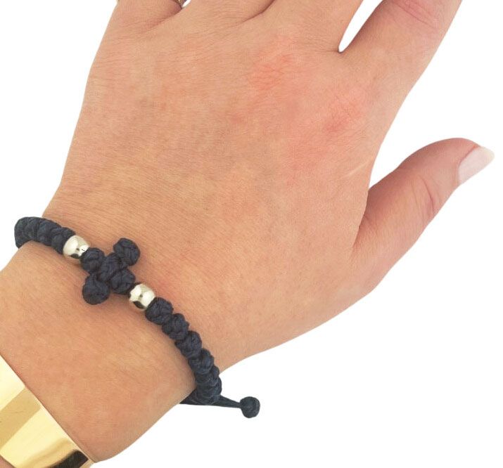33 Knot Adjustable Bracelet w/Cross, Light Black