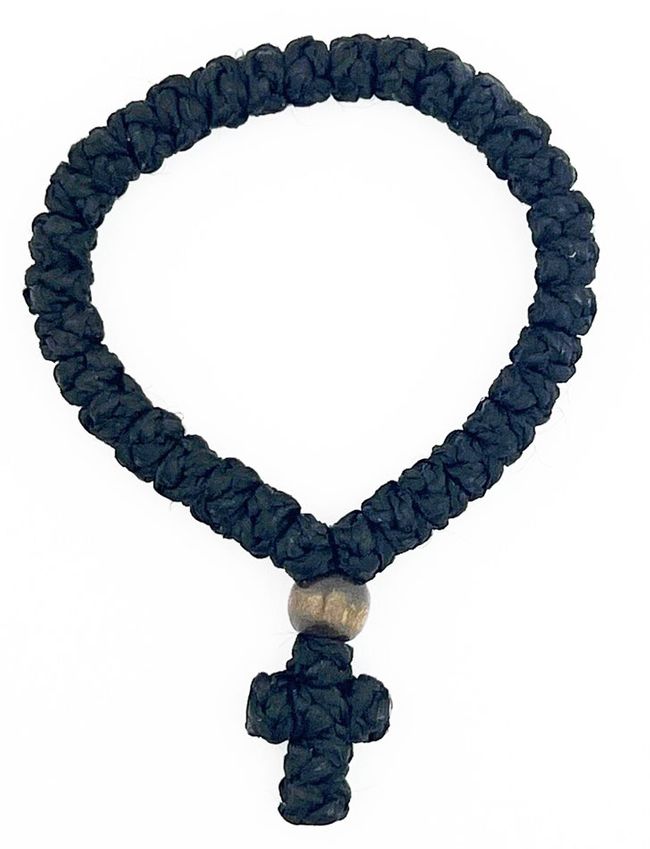 Prayer Rope with Cross, 33 Knots, Black