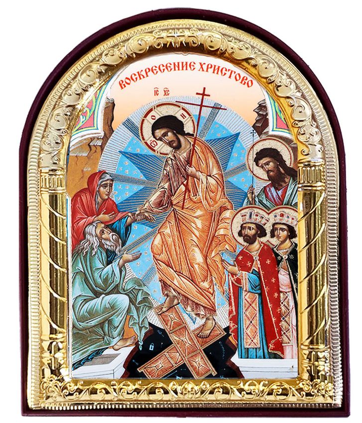 Resurrection of Christ, Arched Orthodox Icon with Stand