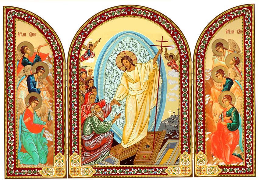 Resurrection of Christ with Angels, Foldable Orthodox Triptych