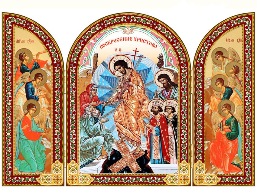Resurrection of Christ with Angels, Foldable Orthodox Triptych