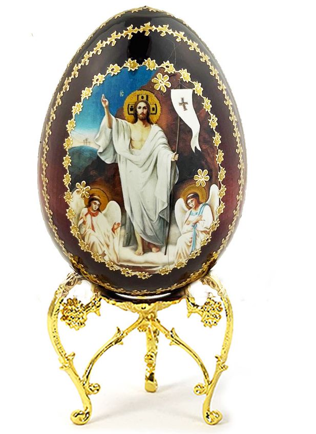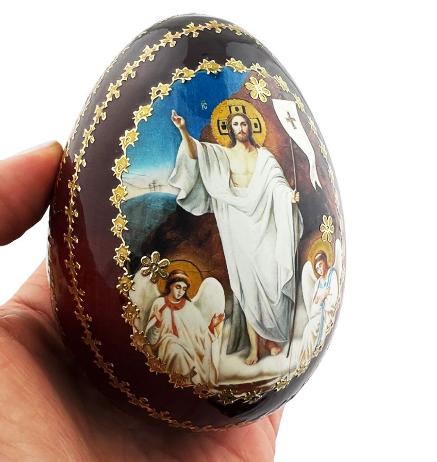 Resurrection of Christ, Wooden Decoupage Icon Egg with Stand