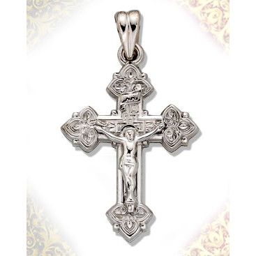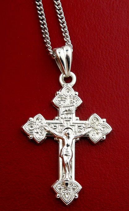Sterling silver cross with Corpus Crucifix. High polish bright finish.