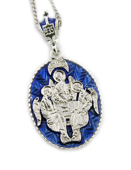 Virgin of Vladimir / The Holy Trinity, Reversible Icon Pendant, Sterling Silver 935, Gold Gilding, Blue Enamel.