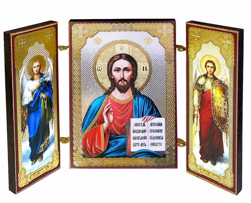 Christ The Teacher / Archangels Michael and Gabriel, Mini Triptych