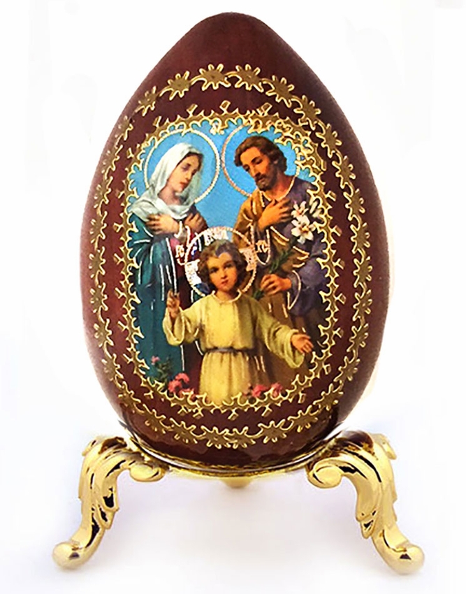 The Holy Family, Wooden Icon Egg with Stand