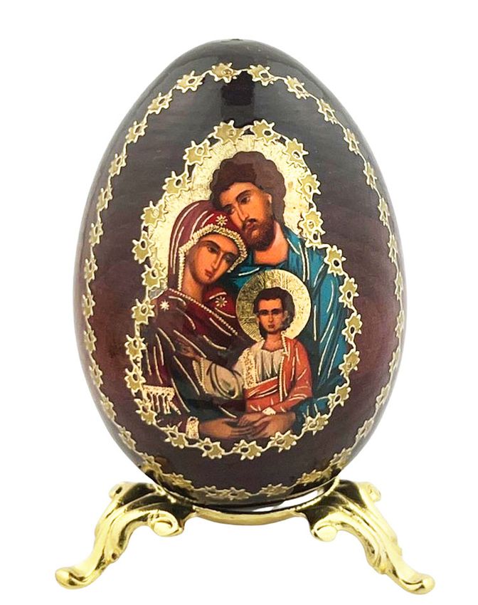 The Holy Family handcrafted decoupage Icon wooden egg