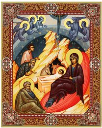 Nativity of Christ, Gold Foil Orthodox Icon with Stand