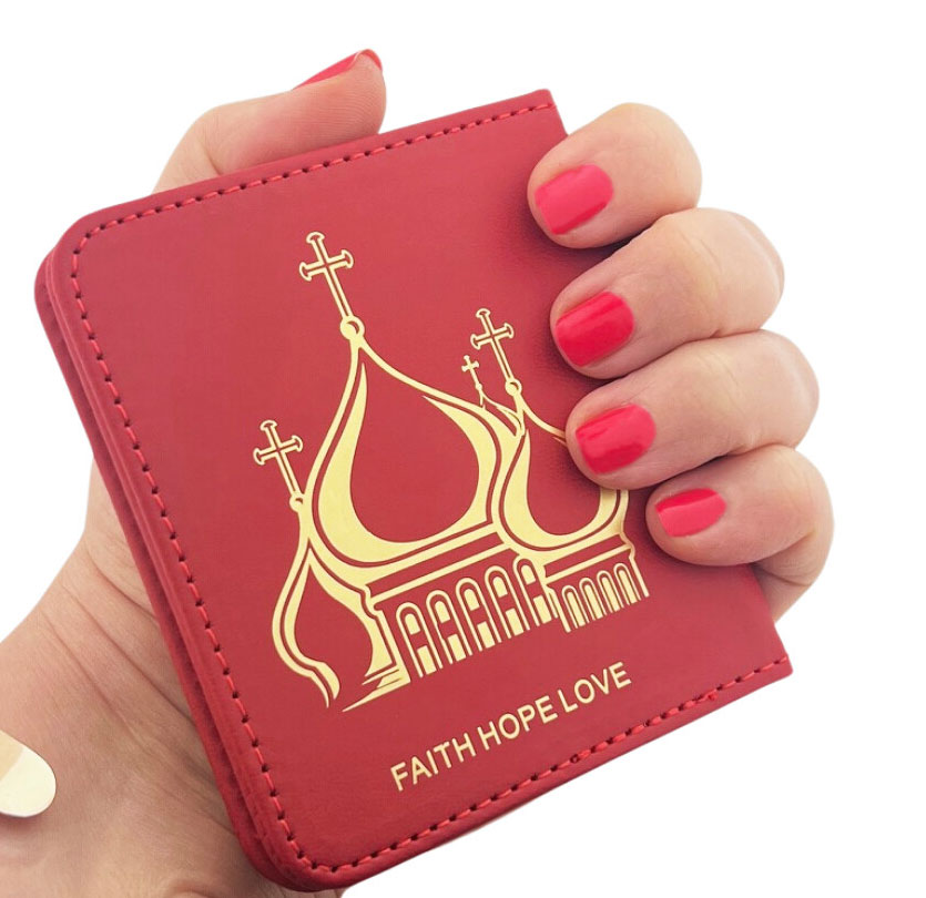 - Gold Foiled Details: Adorned with a stunning cross on the front and the phrase, "With This Sign You Shall Conquer" on the back, alongside intricate church domes embellished with the words "Faith, Hope, Love." Cross domes and signs are gold foil.