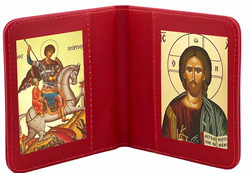 icons of Saint George and Christ The Teacher in leatherette wallet case.