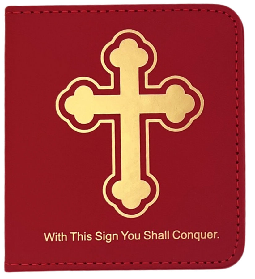 - Gold Foiled Details: Adorned with a stunning cross on the front and the phrase, "With This Sign You Shall Conquer" on the back, alongside intricate church domes embellished with the words "Faith, Hope, Love." Cross domes and signs are gold foil.