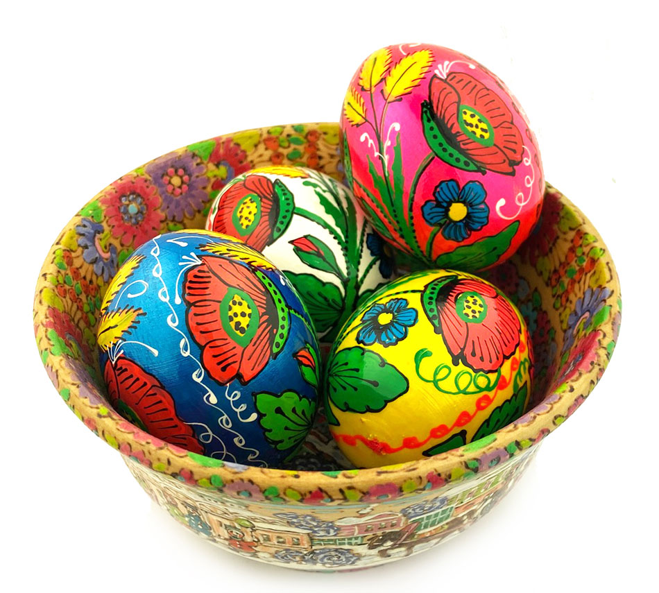 Set of 4 colorful Ukrainian Pysanky wooden