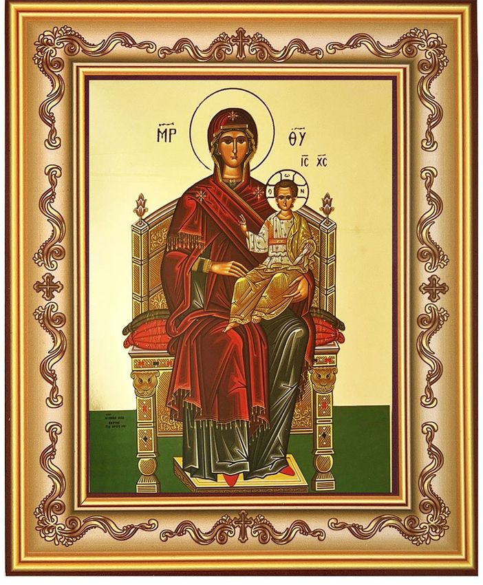 Virgin Mary Enthroned, gold gilded Greek Byzantine