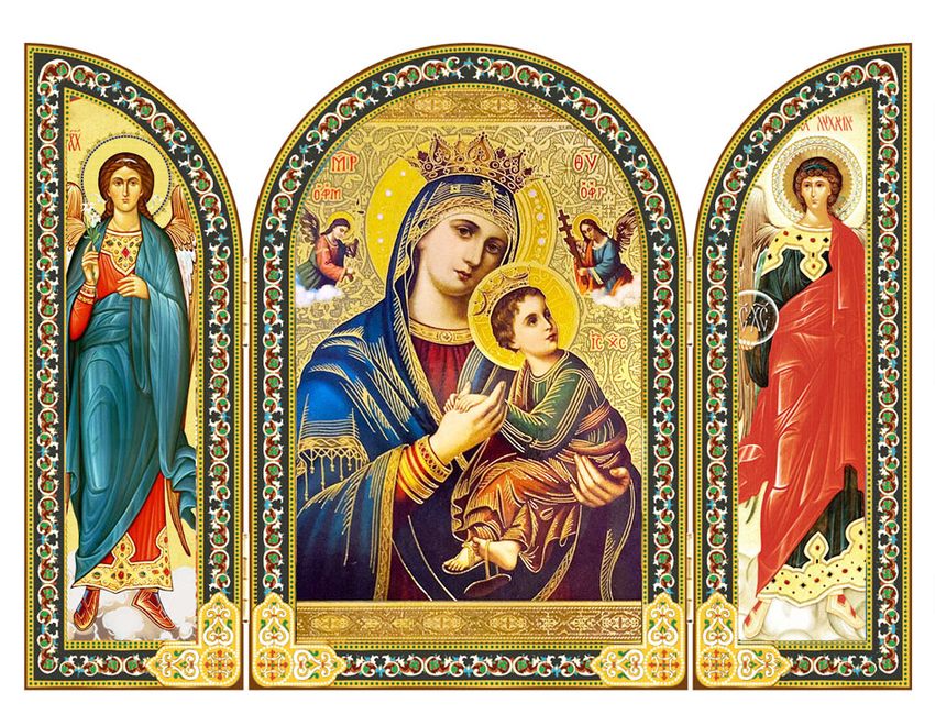 Virgin Mary The Perpetual Help, Icon Triptych With Archangel and Guardian Angel