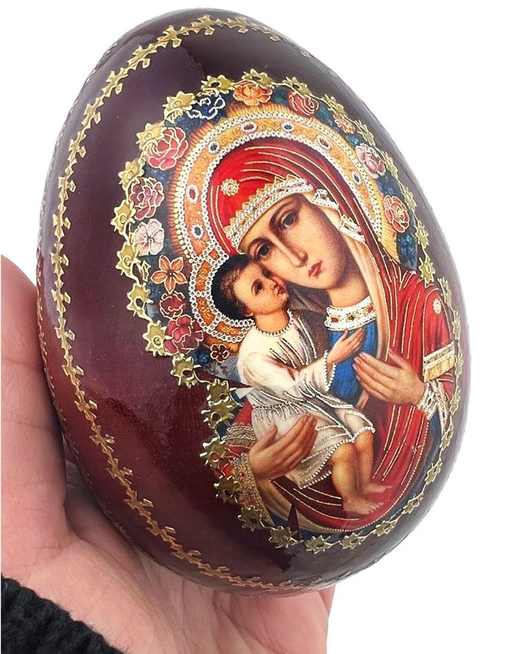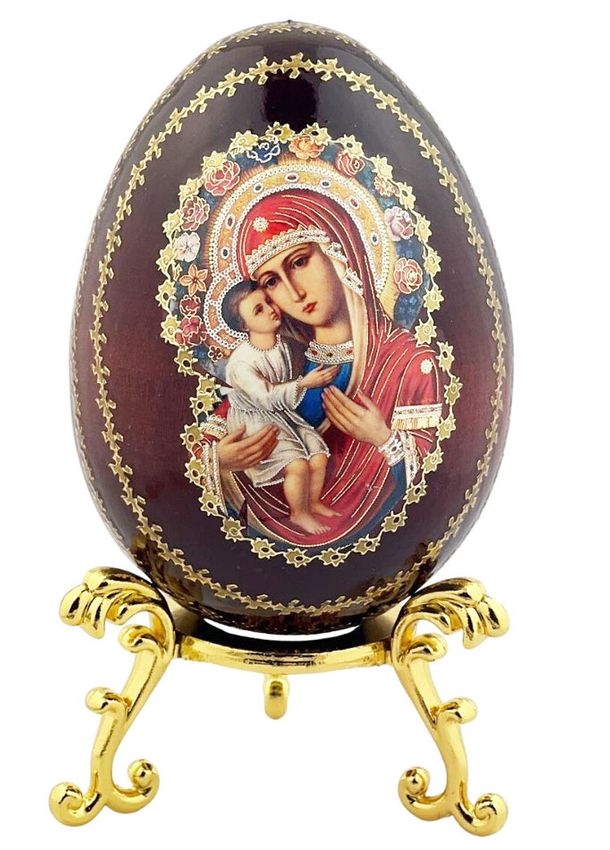 Virgin Mary Zhirovitskaya, Wooden Icon Egg with Stand