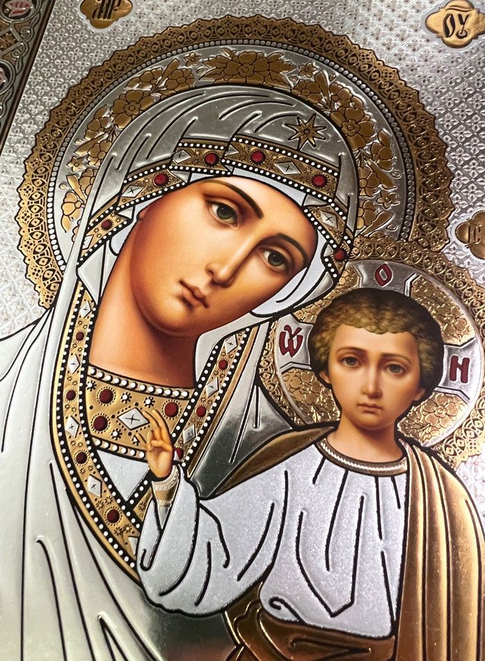 Virgin of Kazan, Framed Gold / Silver Foiled Icon with Glass