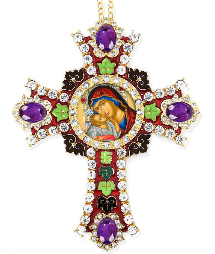 Virgin Mary Sweet Kissing Icon in Cross Shaped Ornament