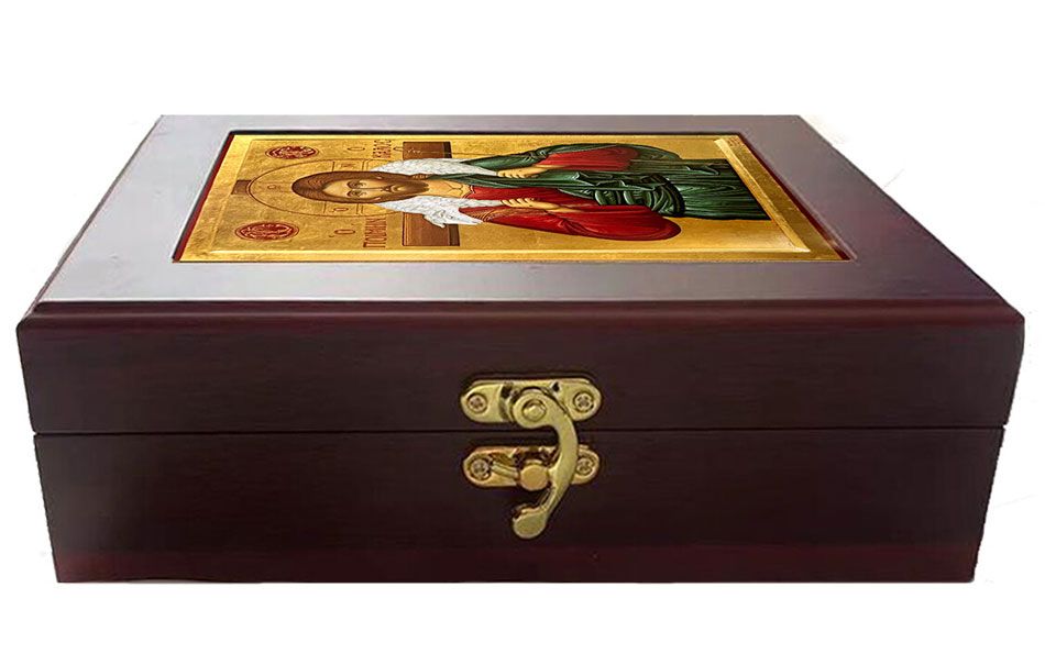 This Sacred keepsake box can be used as a table box or as a framed wall hanging Icon box.