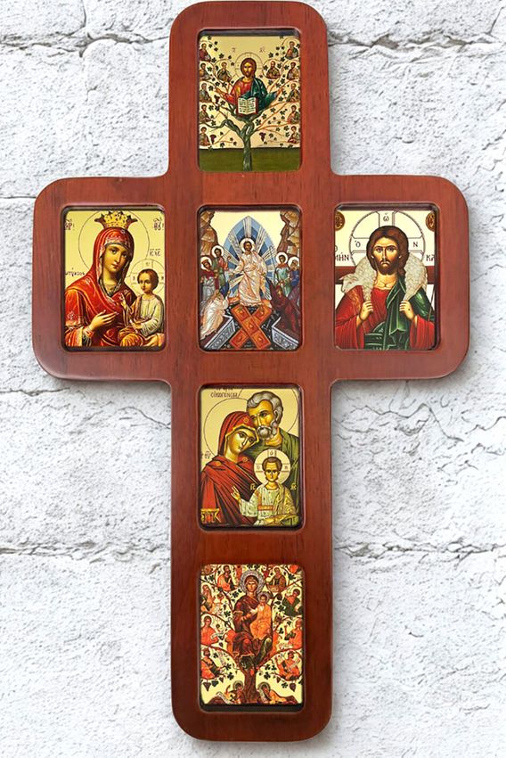 Orthodox Byzantine gold foil icons: Christ the Vine-Tree With Apostles, Virgin Mary "The Quick Hearer", The Resurrection, Christ The Good Shepherd, The Holy Family, JESSE TREE Virgin Mary and Christ with Apostles.