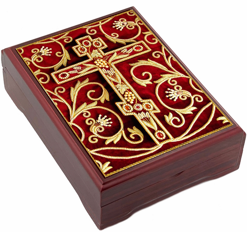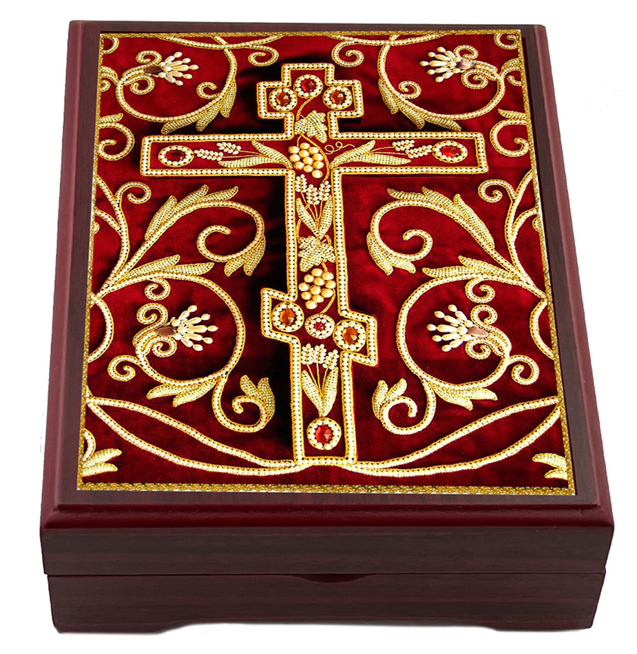 Three Bar Cross, wooden icon keepsake box, lined with velvet. High quality.