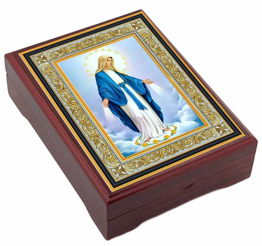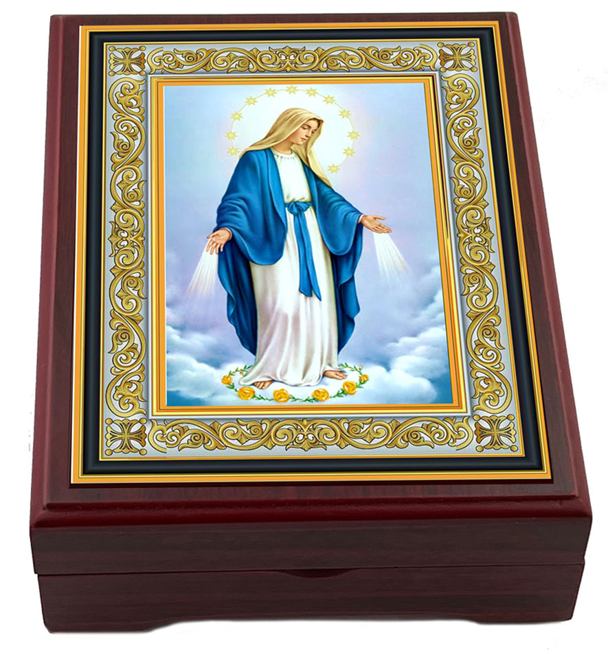 Our Lady of Grace, wooden icon keepsake box, lined with Velvet. High Quality.