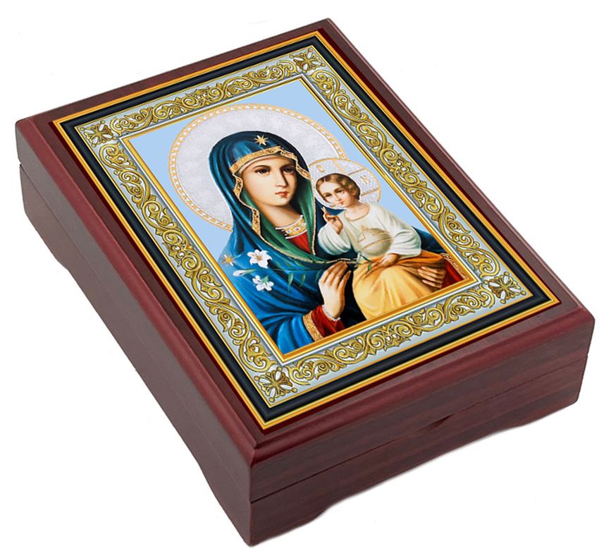 Virgin Mary Eternal Bloom, wooden icon keepsake box, lined with velvet. High Quality.