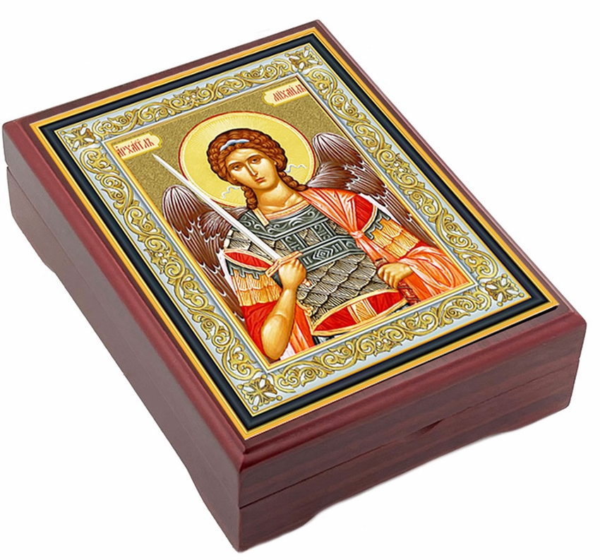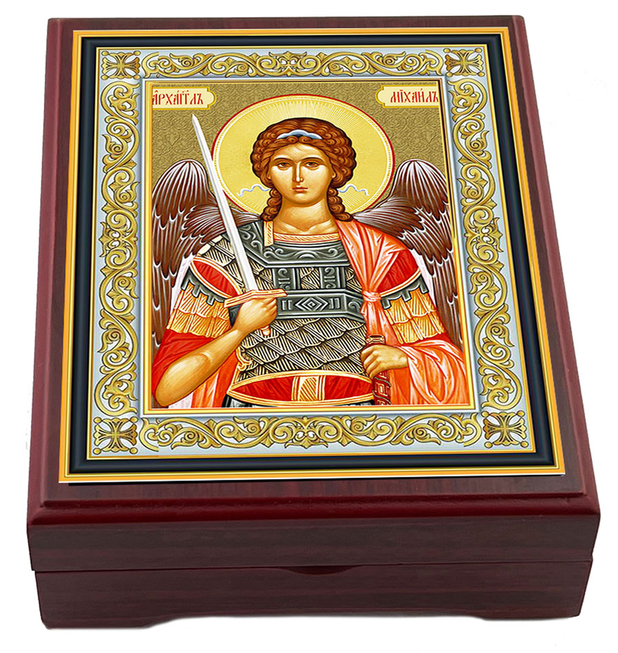 Archangel Michael, wooden icon keepsake box, lined with velvet. High quality.